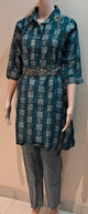 Effortlessly elevate your style with our heavy coord set in breathable mulcotton. This set includes a top and bottom, both in a vibrant green color and accented with a complementary belt. Stay comfortable and on-trend with this must-have set.Beautiful blue colour heavy coord set with work in collar